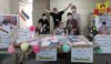 ご利用者の佐藤様が一生懸命に作った巾着袋を地域の皆様に見ていただき