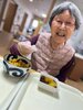 ようかん液に栗をたくさんのせて完成を待ち焦がれている入居者様のとびきりの笑顔をパシャリ!