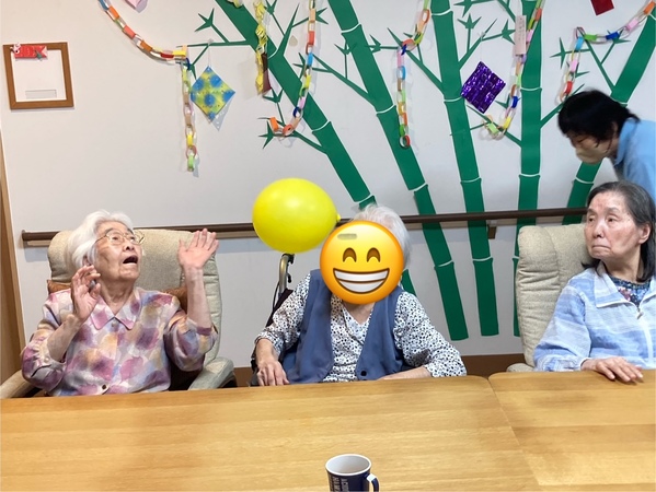 そこで、室内でもできる風船バレーをみんなで楽しく決行いたしました(笑)