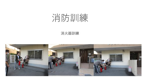 写真は避難誘導と天王寺消防署より水消火器お借りしての消火訓練